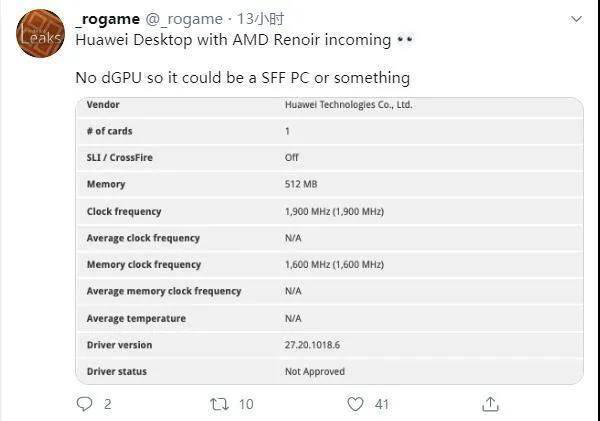 關(guān)于華為電腦的資料目前媒體們所知不多。有一位海外推主曾經(jīng)拿出過(guò)一份配置資料:顯示華為臺(tái)式機(jī)搭載了Ryzen 5 PRO 4400G 處理器,6核12線程,基礎(chǔ)頻率3.7GHz,最高頻4.3GHz。