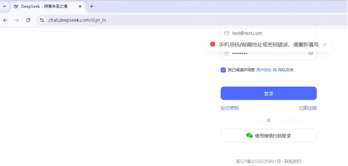 在偽造的登錄頁(yè)面,即便用戶輸入正確的用戶名和密碼,頁(yè)面也會(huì)提示用戶名或密碼錯(cuò)誤。用戶名和密碼信息將會(huì)被發(fā)送至 https://chat.deepseek.com/ api / v0 / users / login 接口中,并且該登錄頁(yè)面會(huì)不斷獲取當(dāng)前瀏覽器版本等信息。
